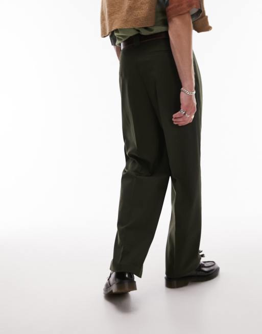 Topman wide leg warm handle trousers in khaki Very well made.