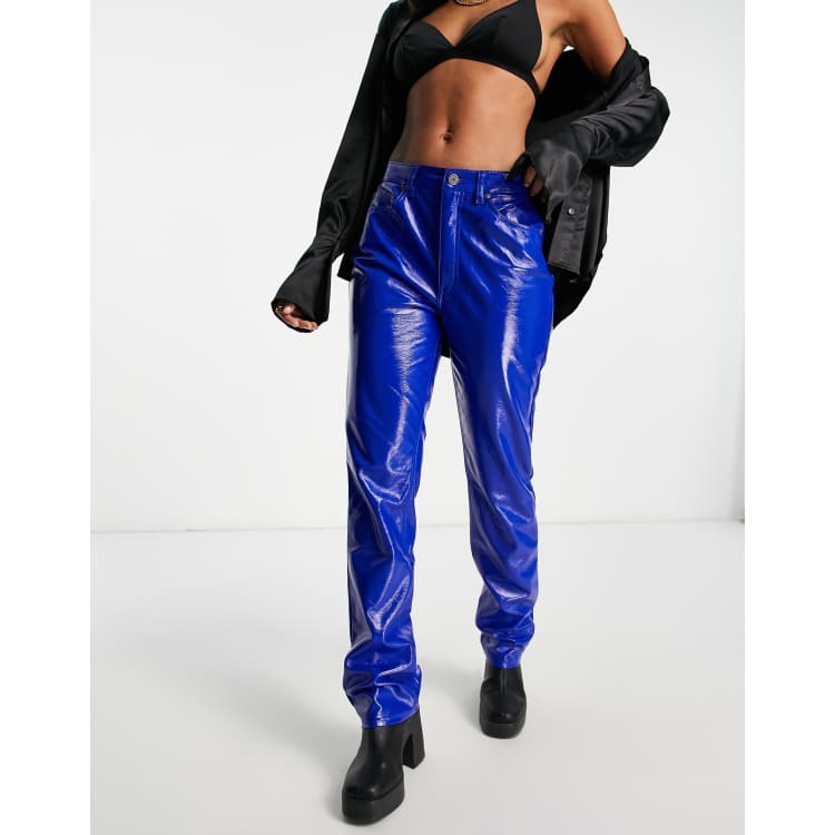 River Island faux leather straight leg trouser in bright blue Very well made.