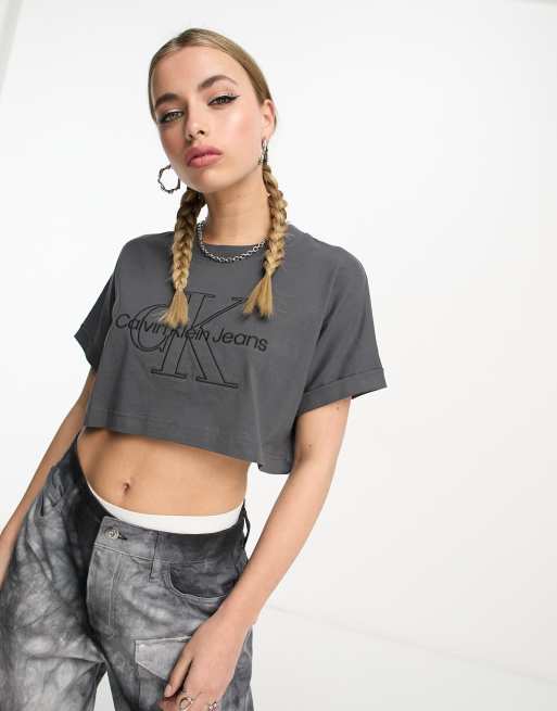 Calvin Klein Jeans monogram logo cropped t shirt in washed black Very well made.
